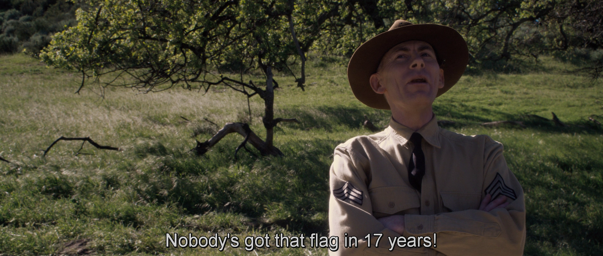 During Steve’s training, the flag that he and his fellow candidates are challenged to get is emblazoned with the dates 1914 and 1942. That’s one year older than we’ve established that this is, but the flag looks a bit worn so maybe it’s been there for a while. Either way, the last time someone got the flag was apparently 1926.