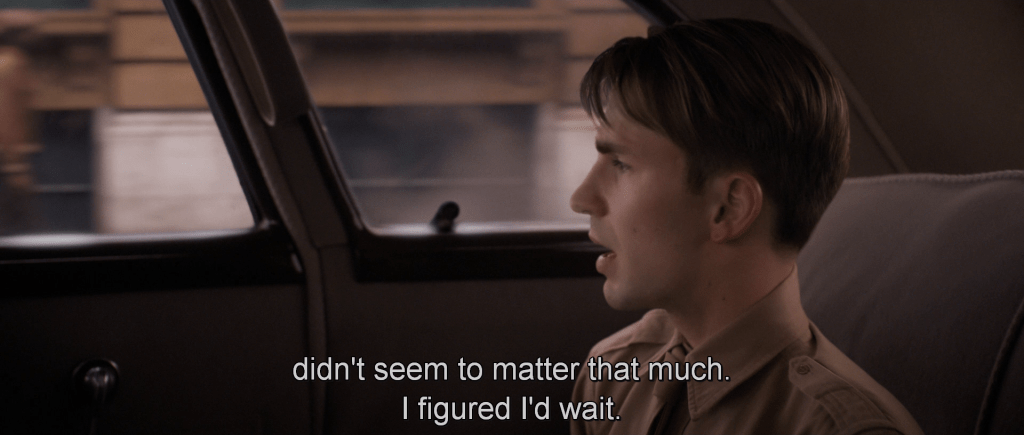 Here we can assume that Steve is talking about the war which America would have been involved in for about a year and a half by this point, which brings up the question of how Steve would have felt about the war prior to America’s entry. “A few years” is a broad enough term that it could just be referring to the 18 months since the bombing of Pearl Harbor, but I like to think it’s an indication that Steve is the kind of person who was concerned about the war well before America had joined in the fighting. After all, that’s the behind-the-scenes legacy of this character in the comics with Jack Kirby and Joe Simon famously receiving death threats for creating the Führer-punching super soldier a full nine months before America was formally ready to get involved.