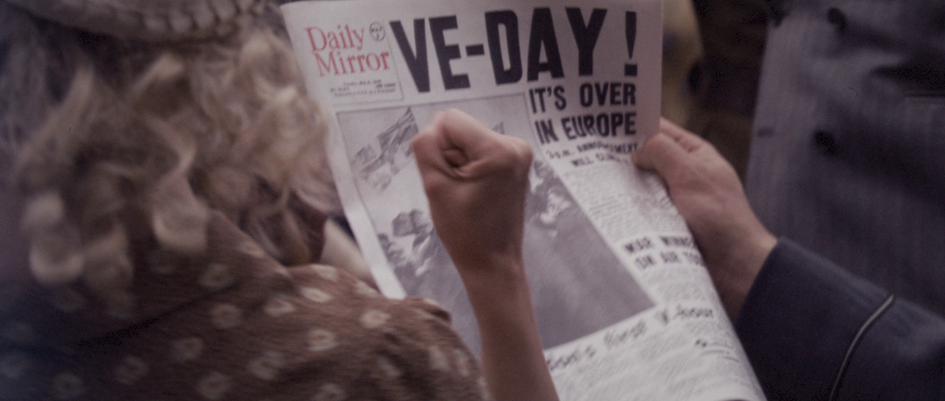 These screen caps cover nearly a full hour of the film, but I’m lumping them all together because there’s some passage of time in the back half of this movie that is never explicitly defined. Obviously the setting of this movie has a definite endpoint with VE-Day being May 8, 1945, but it’s not entirely clear if Steve went in the water shortly before VE-Day or if the movie is bending time a little bit for emotional impact. Logically, it makes the most sense that Cap and the Howling Commandos were able to topple Hydra’s bases over a matter of months – and the wintertime imagery that prevails over this part of the movie seems to support that theory. Plus, Schmidt was pretty far along in the development of weapons; it doesn’t seem like it would take an additional year and a half before he’d be ready to launch his assault. I think putting Steve’s crash in late winter of 1944 makes the most sense, with the Howling Commandos taking a moment to drink to Cap amid the celebrations of VE-Day.