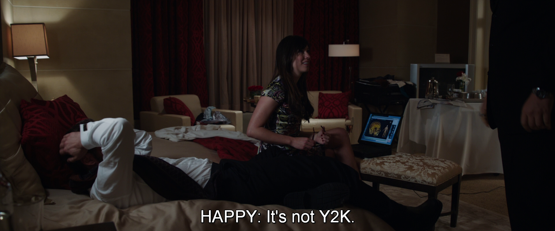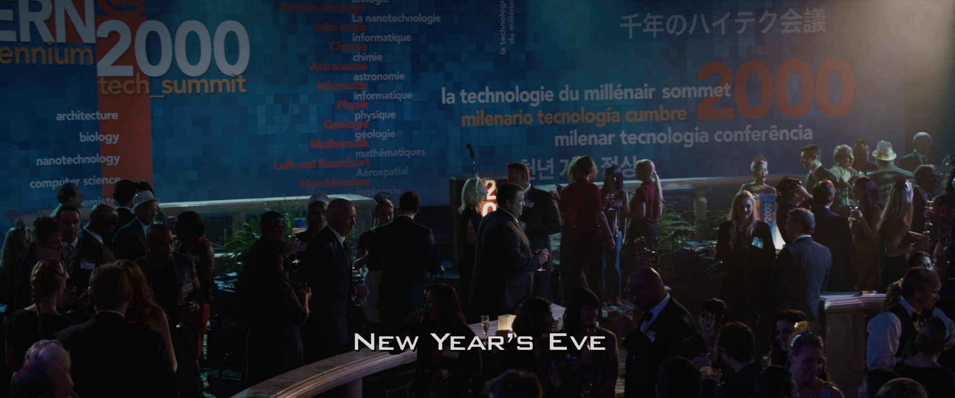 Iron Man Three begins with a prologue that is explicitly tied to a very specific time. There’s no ambiguity or room for interpretation here, and all the rules agree; this is New Year’s Eve, 1999. It’s there in the title card, it’s there in dialogue, it’s there in background information and set design, and it’s going to be the immovable anchor for dating the rest of this film.