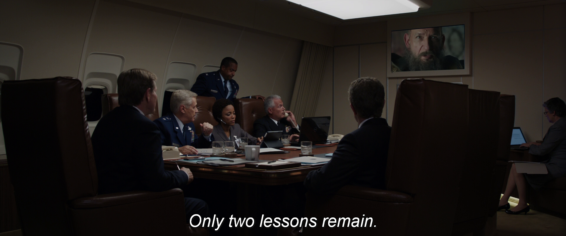 Not much here in terms of assigning a specific date to this movie, but we do get a few stray references to things happening several dozens of hours ago, as well as a reference to an actual, real world piece of history.