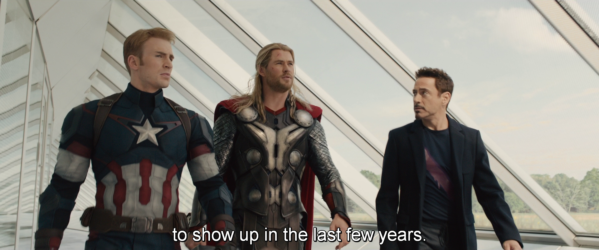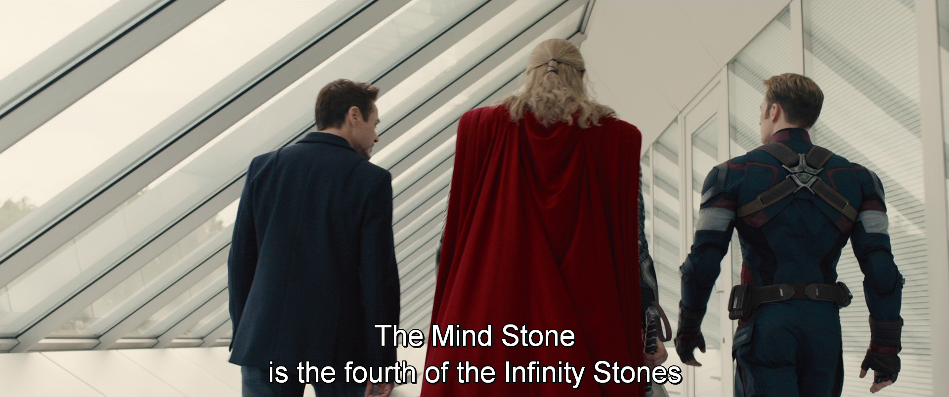 Right off the bat, we establish that this takes place at some point after Captain America: The Winter Soldier. Not only Tony Stark saying as much out loud, but in the whole opening sequence that revolves around the Avengers raiding a HYDRA base to retrieve Loki’s staff. So far that puts us in 2014 at the absolute earliest (The Winter Soldier took place in fall of 2013, but we’ve got to allow for some time for the Avengers to reassemble and to raze multiple HYDRA facilities).