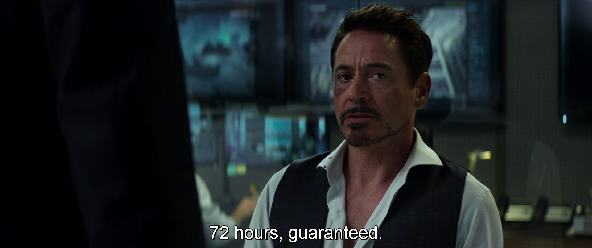 Glossing over a few dates that don’t really matter to get to Tony’s reference to Iron Man Three. Even though we’re moving all of Phase One back, Iron Man Three is not moving with it. I’ll explain more why at the end of this, but for now, Iron Man Three still takes place in December of 2012.
