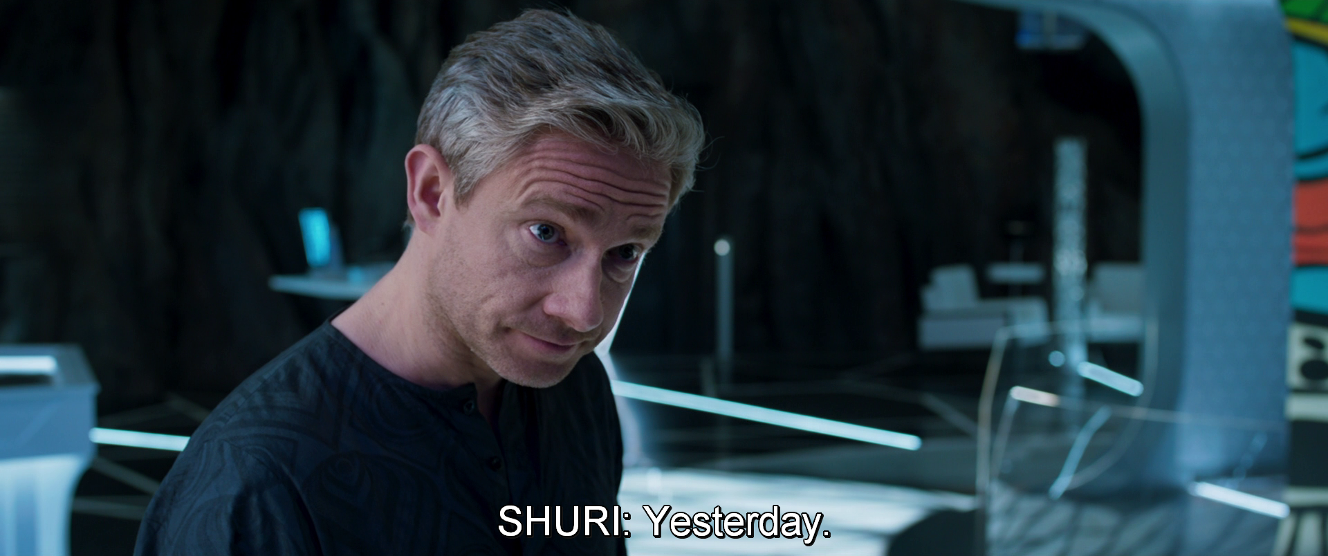 As we’ve come to expect with these, Black Panther takes place over the span of roughly a week. There’s the opening attack scene, T’Challa’s coronation the following day, the mission to Korea the day after that, the return home two days later, Killmonger’s coup, and T’Challa’s efforts to reclaim the throne.